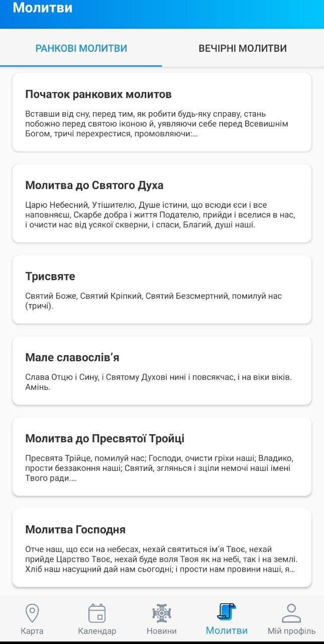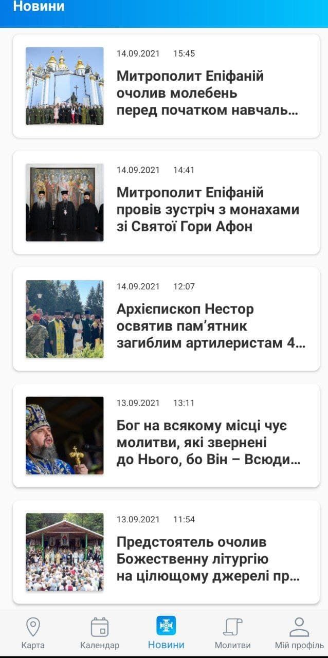 Также там можно найти церковные молитвы. А в разделе "новости" собрана информация о всех новостях из жизни ПЦУ.