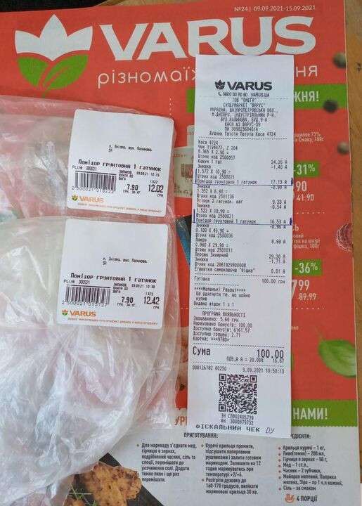 "И снова Varus – деньги дописывает в чек за покупки и отказывается возвращать. Вот и сегодня в Varus г.Днепр, ул.Калиновая-9 около 10 часов взвесил полтора кг помидор, через полчаса позвонила соседка и попросила и ей купить, в 10:40 взвесил еще полтора кг помидор и в 10:50 оплатил, а в чек на кассе добавили сумму еще как за полтора кг. Через час вернулся с чеком и помидорами с ценниками. Заведующая VARUS ответила, что якобы ей дали команду поднять цены, но ценники не успели поменять, так как помидоры по вышей цене уже раскупили и я попал в этот промежуток с 10 до 11, а через полчаса уже помидоров нет. И деньги возвращать отказалась. Я редко в чеки смотрю, а зря…", - написал в соцсетях покупатель Виктор Онипченко.