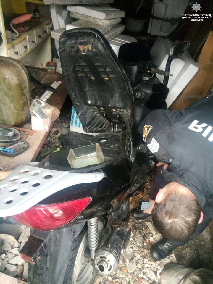 Патрульные начали осматривать место происшествия и увидели след от транспортного средства, который вел к одному из домовладений. Украденный мопед там и находился. Хозяйка дома не смогла объяснить, откуда у нее во дворе появилось транспортное средство.