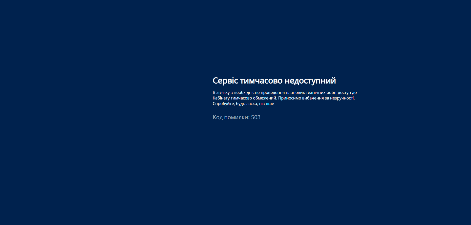 "Сервис временно недоступен. В связи с необходимостью проведения плановых технических работ доступ к Кабинету временно ограничен..." - указывается при входе на портал.