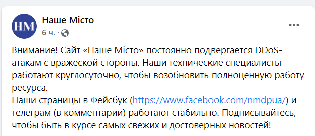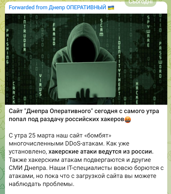 Сегодня с самого утра новостные сайты Днепра подвергаются DDoS-атакам российских хакеров.