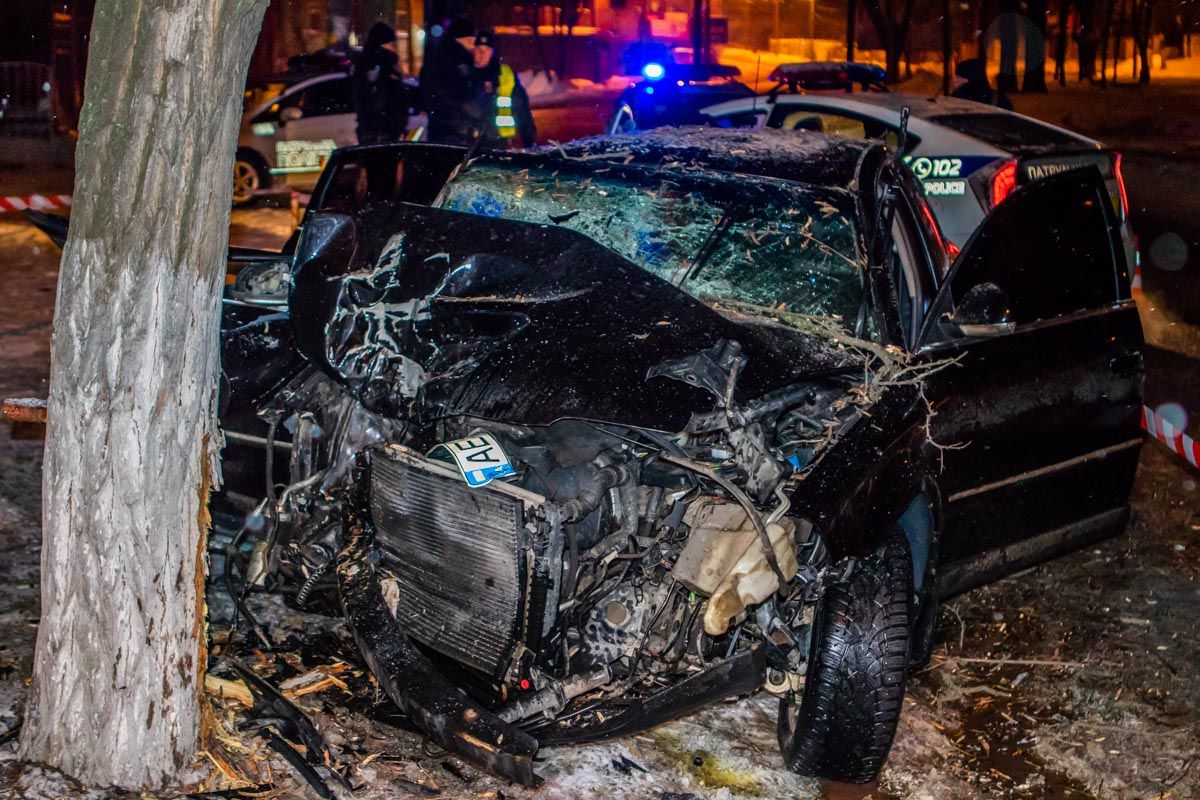 Обломки разлетелись по всей дороге: в Днепре легковушка врезалась в дерево