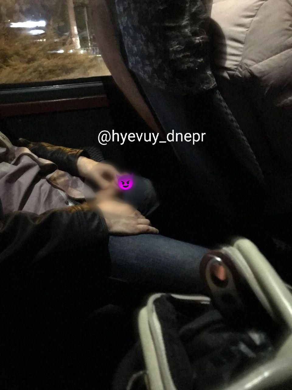 Судя по подписи, в 40-й маршрутке Днепра ехал мужчина, который достал из штанов свой половой орган.