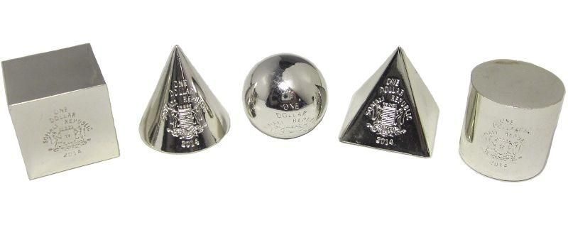 Так, например, банк Сомали выпустил объемные монеты в виде пирамидки, шарика, кубика, цилиндрика.
