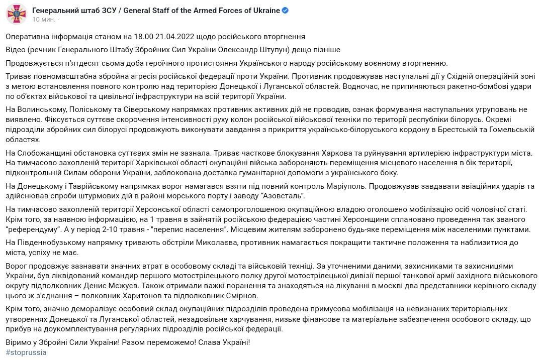 Об этом сообщает Генеральный штаб Вооруженных сил Украины.