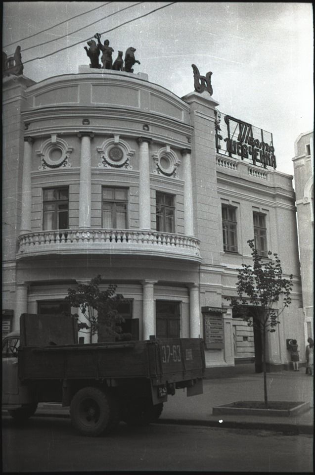 На снимках выше можно увидеть несуществующий ныне дом Петровка, в котором располагалась одна из первых станций очистки сточных вод. А сегодня на его месте горожане прогуливаются по Театральному бульвару. Рядом с театром появились одни из первых девятиэтажек в городе, расположенные по адресам ул. Воскресенская, 4 и 4-а.