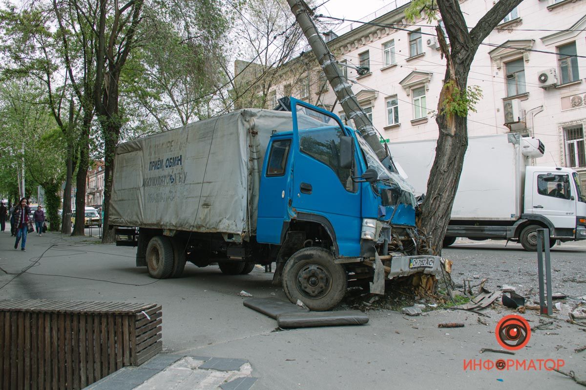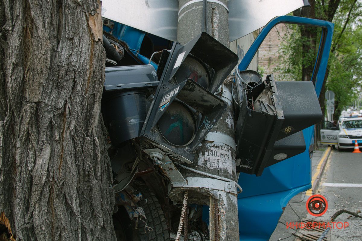 Отказали тормоза: в Днепре на Сечевых Стрельцов грузовик врезался в светофор