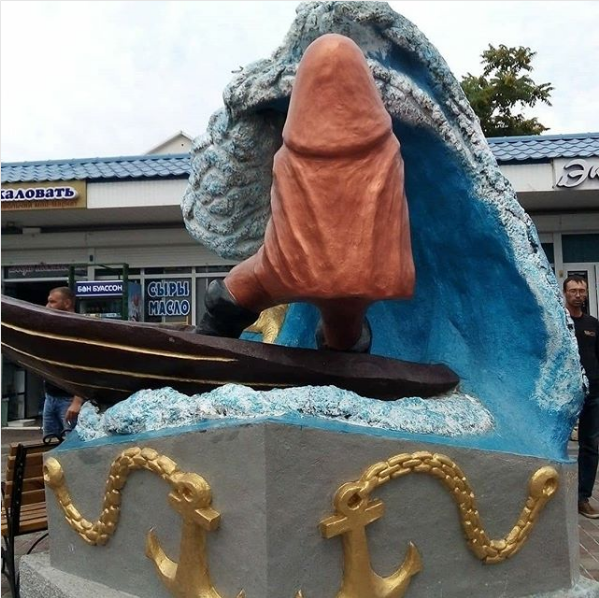 Жаркие дискуссии разгорелись вокруг одного из недавних памятников, установленного в Кирилловке. Скульптура посвящена одной из древнейших профессий – рыболовству и изображает лодку, на которой рыбак в плаще с капюшоном пытается вытянуть свой улов из морских волн. Памятник установлен так, что со стороны дороги рыбак виден со спины и именно этот ракурс оказался довольно неоднозначным.