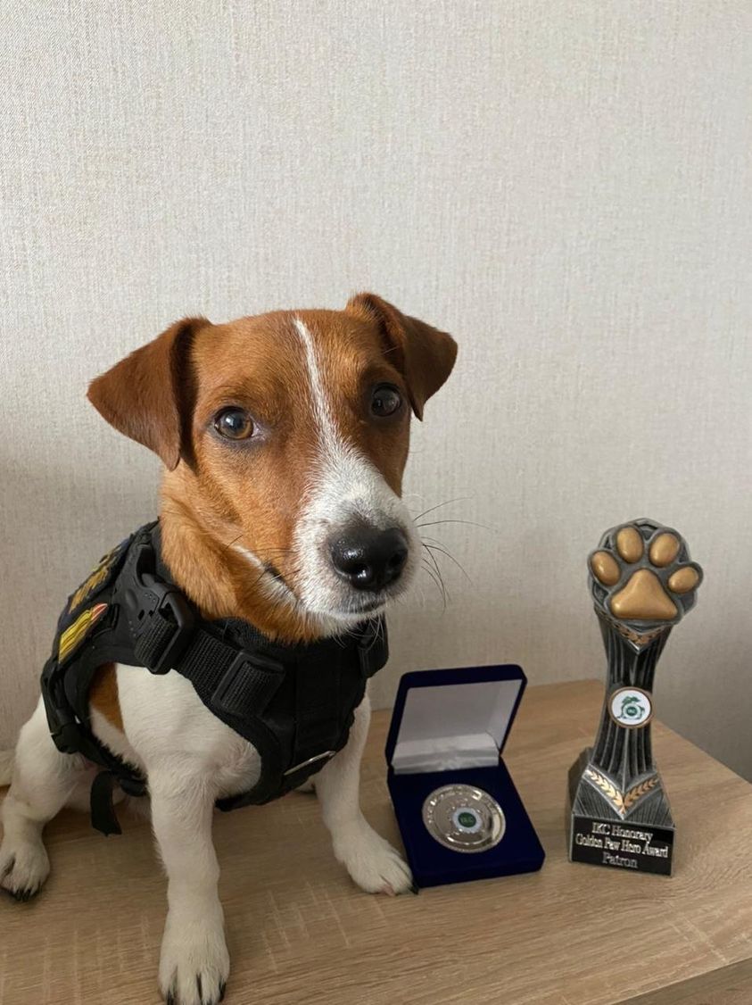 "Наш Патрон пополнил свою копилку мировых наград! Только что хвостатый наш пиротехник был награжден "Золотой лапой" кинологического клуба Ирландии", - говорится в сообщении.