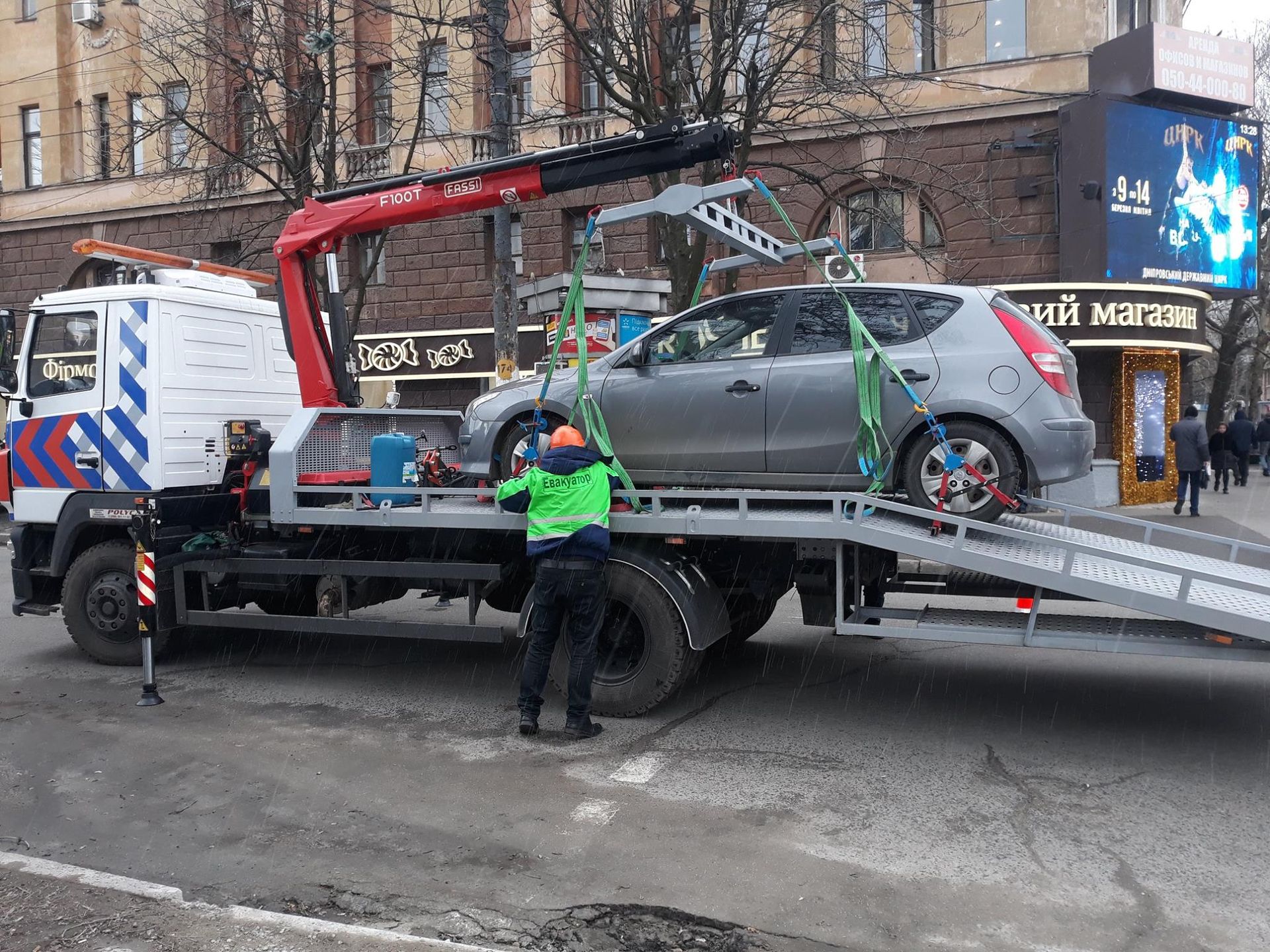 Сегодня вновь была проведена принудительная эвакуация автомобиля. Причиной тому стало нарушение правил парковки. Машину прямо в центре города подняли на эвакуатор и увезли на штрафплощадку.