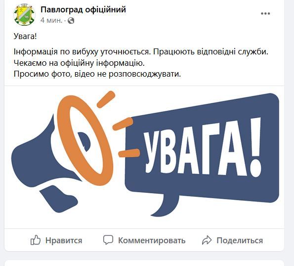 Впрочем, чуть позже на странице Павлоградского горсовета появилась новость о том, что информация насчет взрывов уточняется. На месте работают все необходимые службы. Также попросили не публиковать фото и видео. А в соцсетях сообщалось о том, что был все-таки ракетный удар.