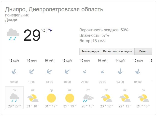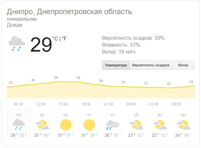 Погода в Днепре 24 июня: переменная облачность и кратковременные дожди