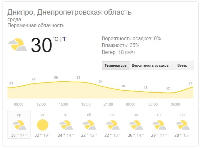 Погода в Днепре 26 июня: облачно и жарко. Новости Днепра