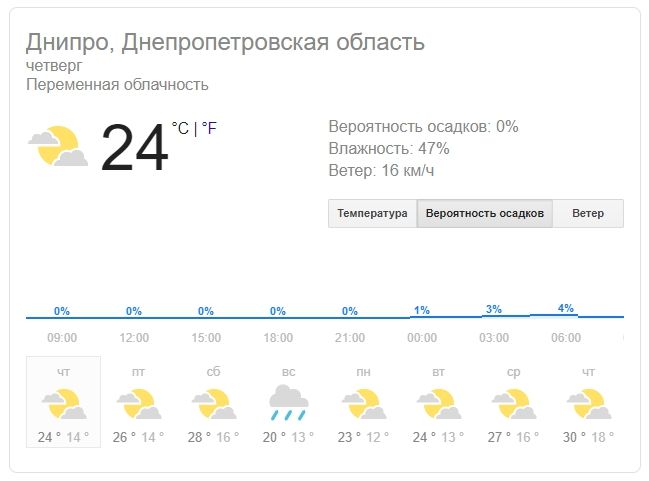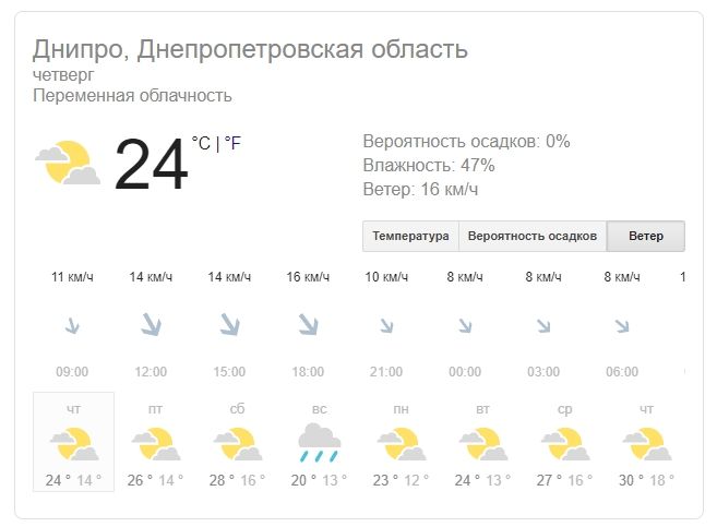 Утром небо в Днепре покрылось облаками, которые продержатся до конца дня. Без осадков. Днем столбик термометра покажет 23 — 24 градусов. Температура воздуха ночью — 15 — 16 градусов. Порывы ветра до 3-5 м/сек.