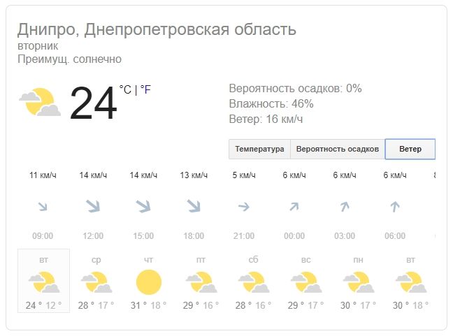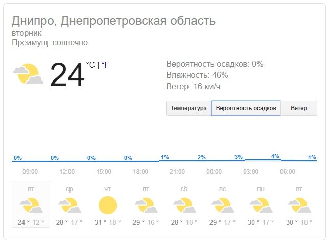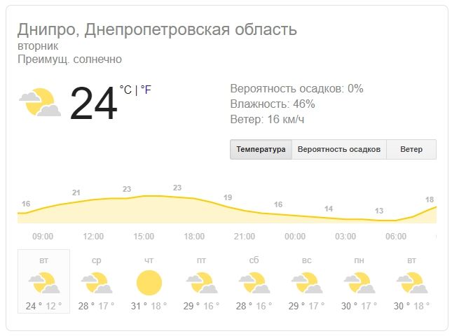 По прогнозу синоптиков, ближайшие 5 дней в Днепре ожидается жаркая погода, температура воздуха продержится в пределах 28 — 31 градус, ночью - 16 - 18 градусов.
