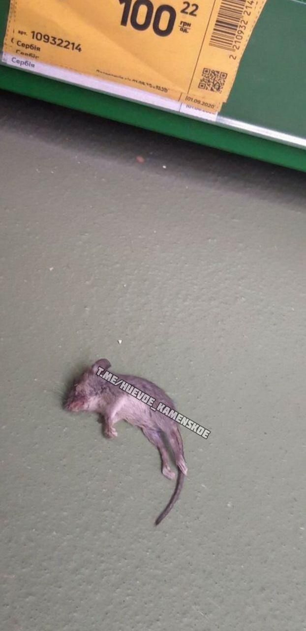 В Каменском Днепропетровской области посетили одного из городских супермаркетов были шокированы «картиной», которую увидели в помещении магазина. Дело в том, что, блуждая по залу покупатели обнаружили на полу умершую мышь.