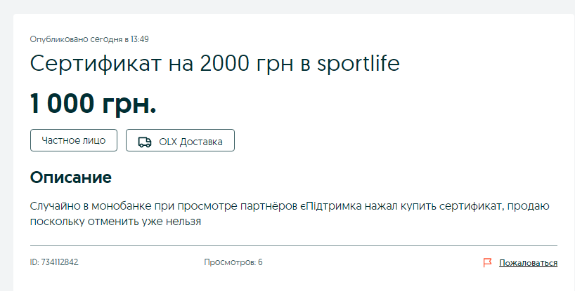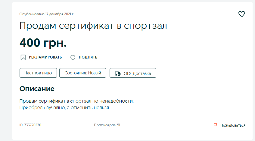 Стоит отметить, что чаще всего, чтобы не возникало вопросов, в объявлениях пишут, что приобрели их случайно. Мол, нажали не туда и купили сертификат в спортзал, а ходить не собираются, поэтому готовы продать дешевле.