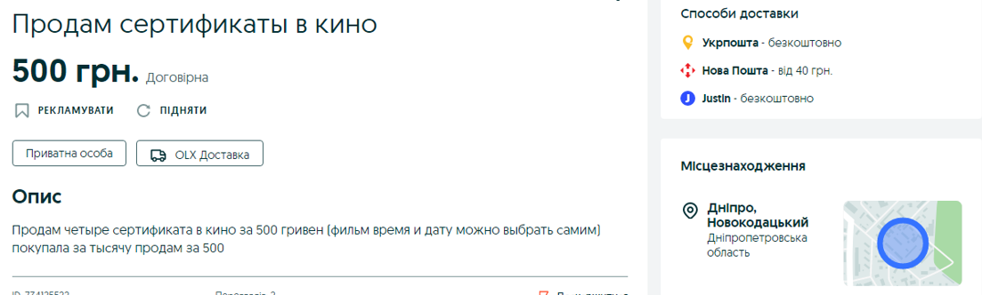 Пытаются заработать и в Днепре сертификат в кино продают за 500 гривен.