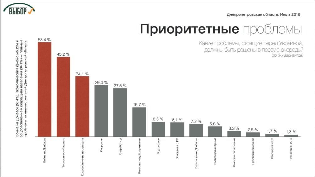 «Если бы выборы президента Украины проходили в ближайшее воскресенье, жители Днепропетровской области голосовали бы за Александра Вилкула (17,3%). Из всех общенациональных политиков он был бы лидером президентской гонки в области случае выдвижения и это подтвердило нашу гипотезу о том, что у каждого оппозиционера есть свои «базовые регионы. Днепропетровщина, таким образом - базовый регион Вилкула. За Юрия Бойко – 13,6%, Владимира Зеленского – 12,3%, Юлию Тимошенко – 11,7%. Замыкает пятерку лидеров Вадим Рабинович с результатом в 9,1%. За ним - действующий президент Петр Порошенко с 7,1% голосов», - заявила Дарья Мошак (ГО «Агентство соціальних досліджень», г. Днепр).