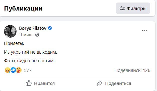 Он попросил не публиковать в соцсетях фото и видео, а также призвал граждан оставаться в укрытиях!