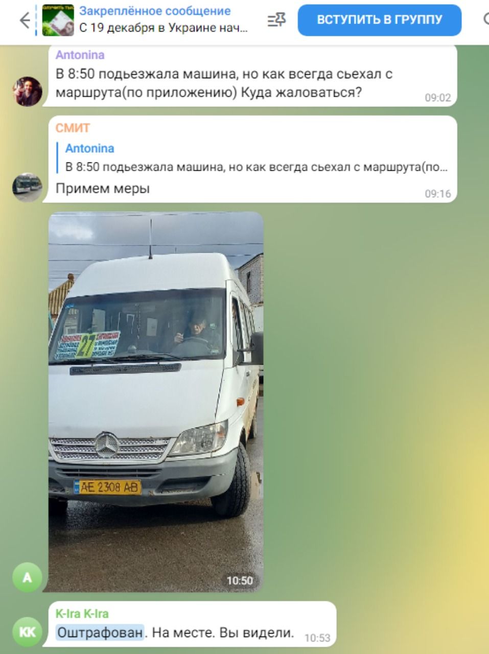 «Водителя оштрафовали. И так будет с каждым. Фотографируйте. Помогите приучить их к порядку!» — ответила диспетчер.