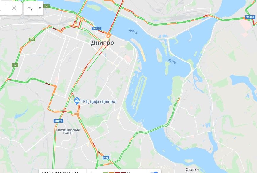 Где в Днепре наблюдаются пробки