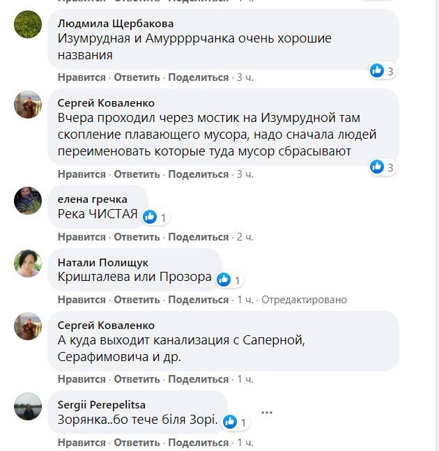 В комментариях начали предлагать новые название. В основном, днепряне выбирают имена, которые напоминают "чистоту". Конечно одним названием нельзя очистить реку и заставить людей не мусорить, но инициатива положительная, уверены горожане.