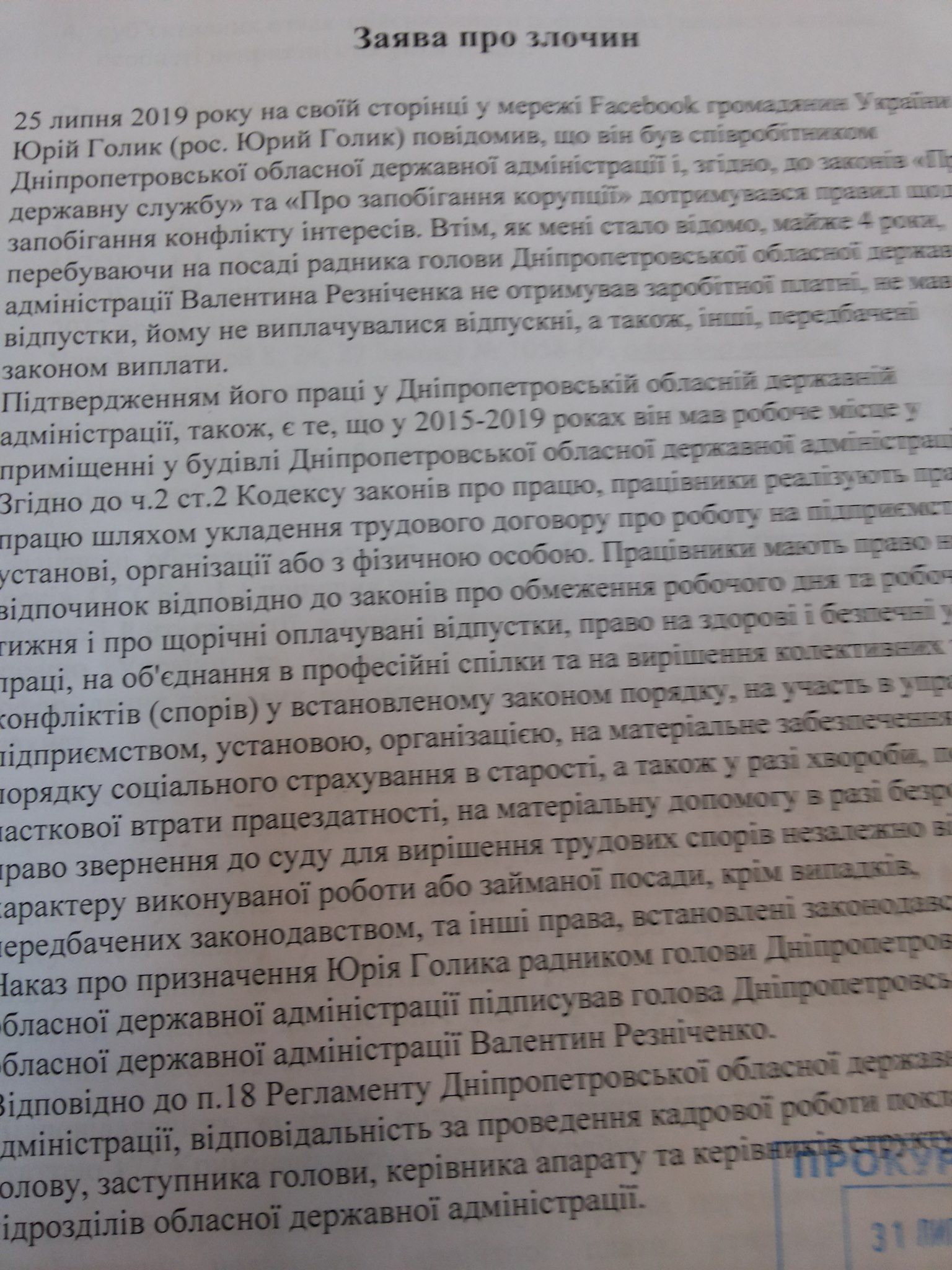 Нет. С подобной вопиющей неблагодарностью со стороны господина Резниченко и отвечающей за кадры в ОГА Айны Тымчук мириться попросту невозможно. Именно поэтому Иван Красиков и решил восстановить справедливость и подал заявление о возможном нарушении статей Уголовного кодекса 172 (Грубое нарушение законодательства о работе) и 175 (Невыплата заработной платы) в прокуратуру. В свою очередь, Соборный районный суд Днепра обязал последнюю открыть уголовное производство. Ведь на лицо не просто нарушения законодательства, а целиком вероятная история издевательств, бесчеловечной эксплуатации и унижения человеческого достоинства!