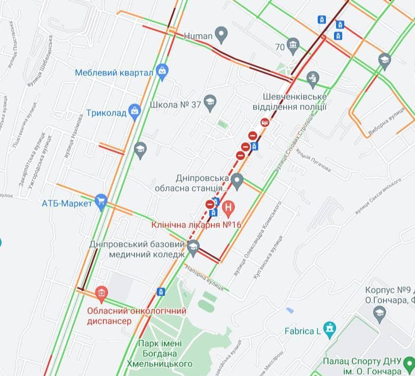 Перекрыли часть проспекта Хмельницкого, а на прилагающих улицах образовались километровые пробки.