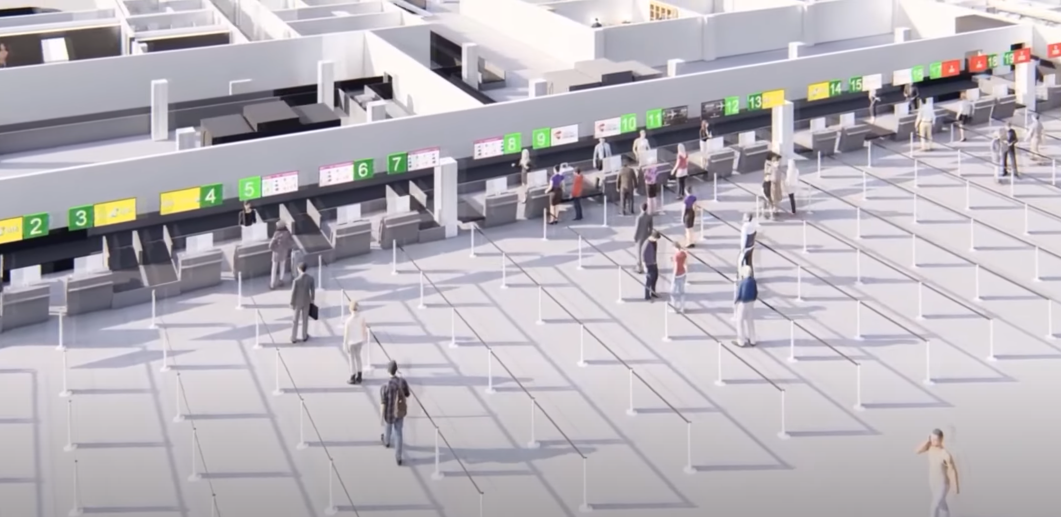 На первом этаже разместят зал регистрации, обработки багажа и прилета внутренних и внешних рейсов. Всего будет 20 стоек регистрации и шесть выходов на посадку. На третьем этаже обустроят зону вылета и проверку безопасности.