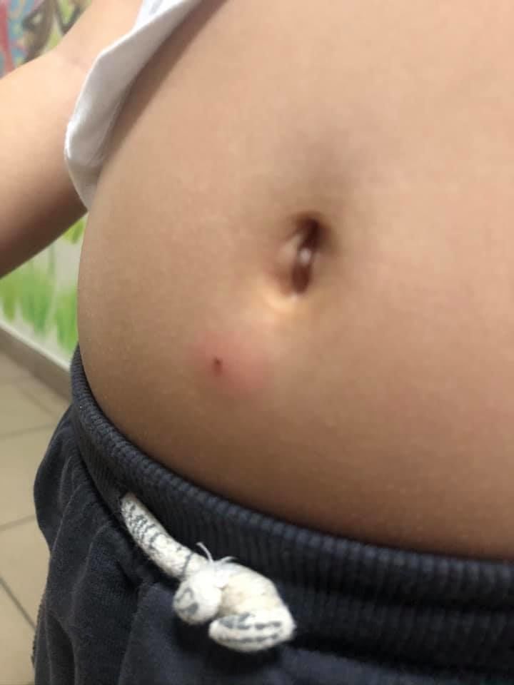 Спустя некоторое время клещ укусил и среднего сына. Все произошло также, как и с девочкой. Потом ребенку сделали тест и он показал негативный результат. Однако через месяц после первого укуса у младшего ребенка повысилась температура до 39 градусов и увеличились шейные лимфоузлы. Кроме того, на теле ребенка появилось красное пятно. По словам матери, пятно появилось не на месте старого укуса. Оно напоминало аллергию, но не чесалось, не пекло и не было горячим. Девочка жаловалась на боль в животе, ногах и спине, указывая на почки. Позже врачи подтвердили, что у ребенка болезнь Лайма.