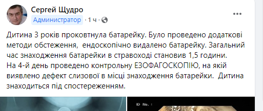 Батарейка-таблетка пробыла в пищеводе ребенка около полутора часов. За это время она успела вступить в химическую реакцию со слизистой ребенка и нанести вред внутренним тканям. Теперь на месте нахождения предмета выявлены дефекты. Ребенок сейчас находиться в больнице под наблюдением врача.