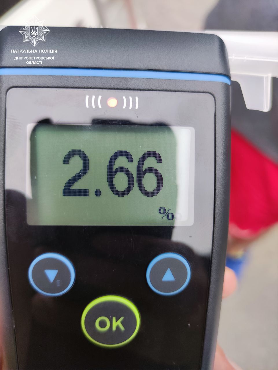 Во время общения патрульные заметили у мужчины признаки алкогольного опьянения и предложили пройти обследование. Прибор Драгер подтвердил, что в его крови было 2,66 промилле алкоголя.