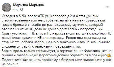 Днепрянка пишет, что год назад на этом же месте бездомные собаки напали на ее знакомую.