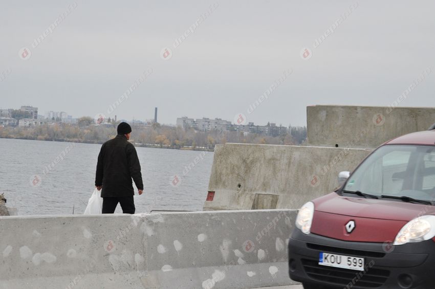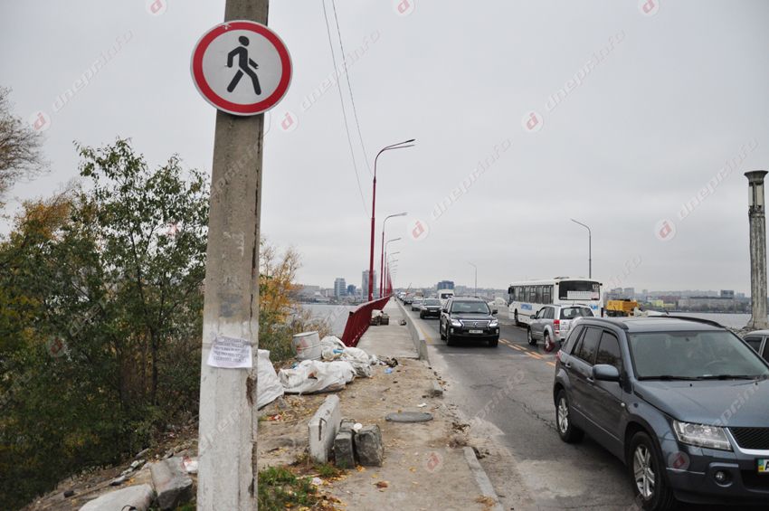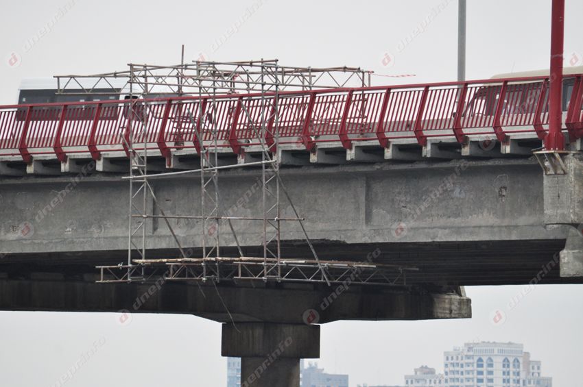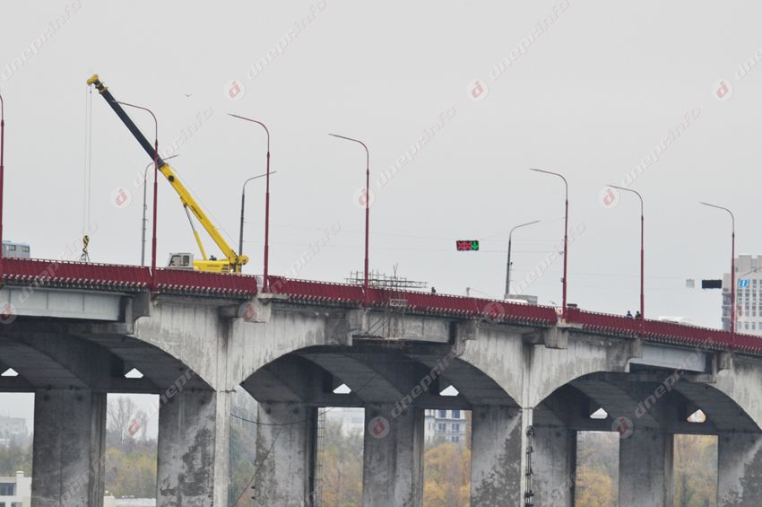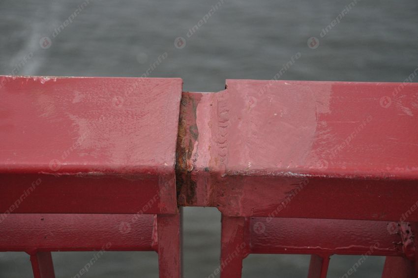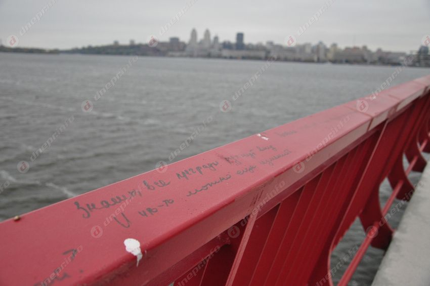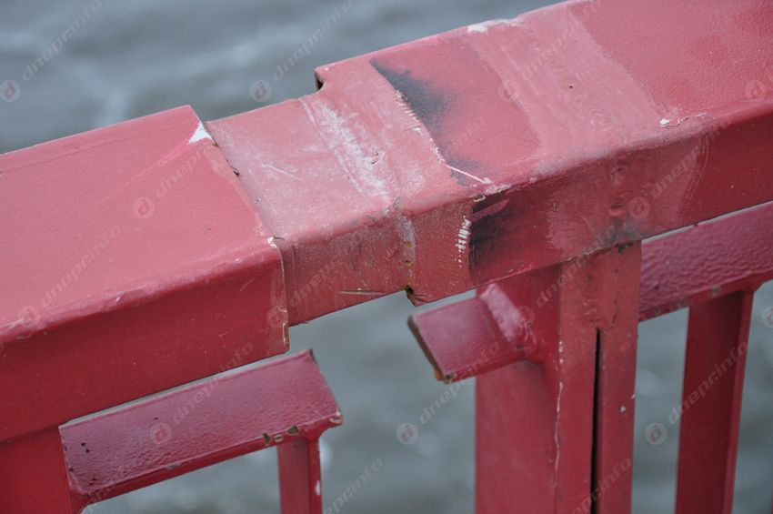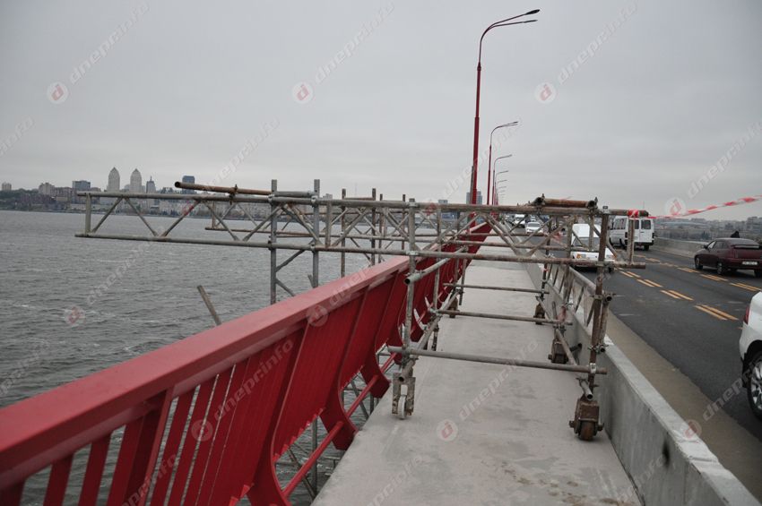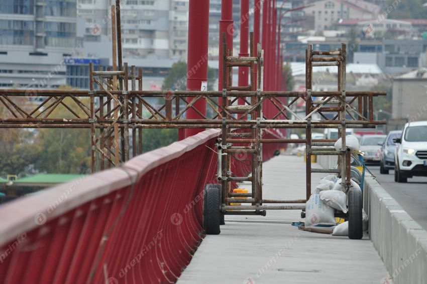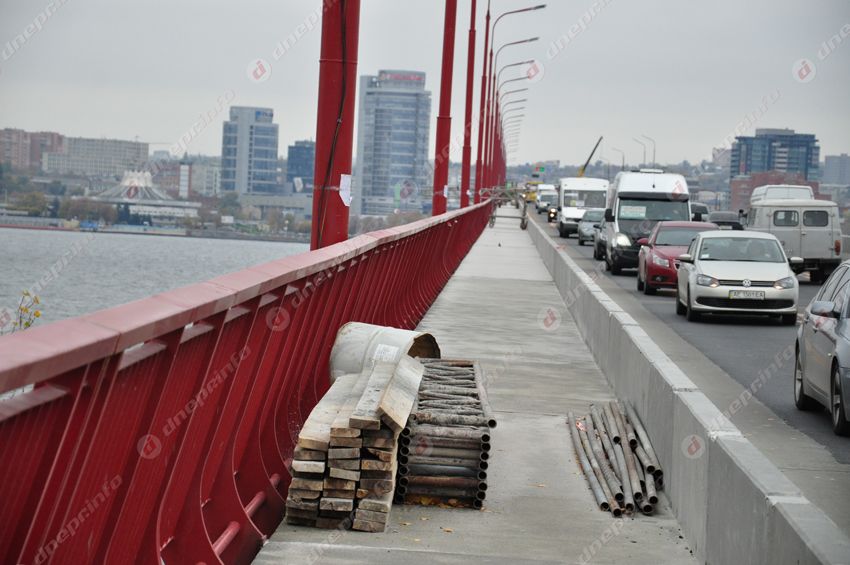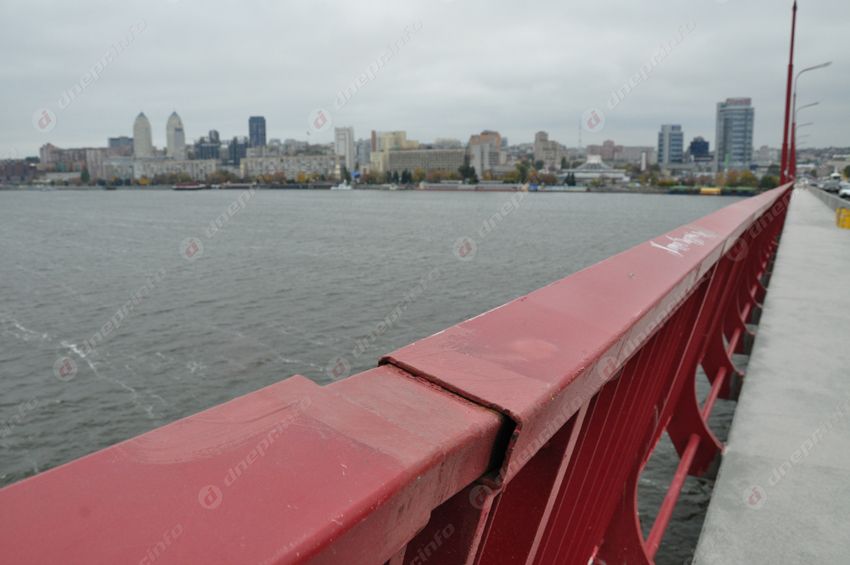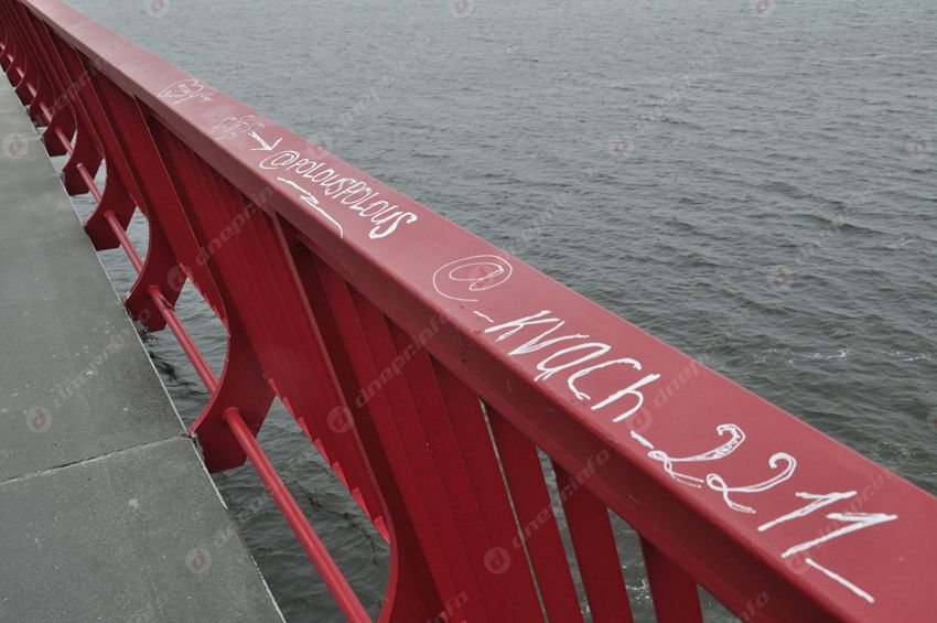 Стоит отметить, что по всей длине моста ограждения уже успели обрисовать корректорами и маркерами. Но это уже вопрос не к рабочим, а к культуре днепрян.