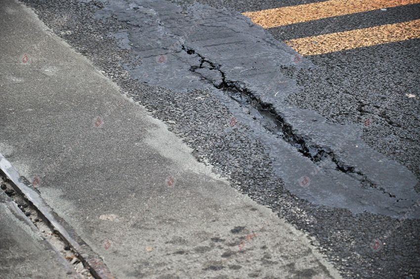 Как минимум в трех местах на мосту возле деформационных швов асфальт пошел "наплывами", в нем образовались небольшие трещины и ямы. При этом, эта сторона была открыта для движения транспорта после ремонта 11 октября, то есть прошло менее трех недель.