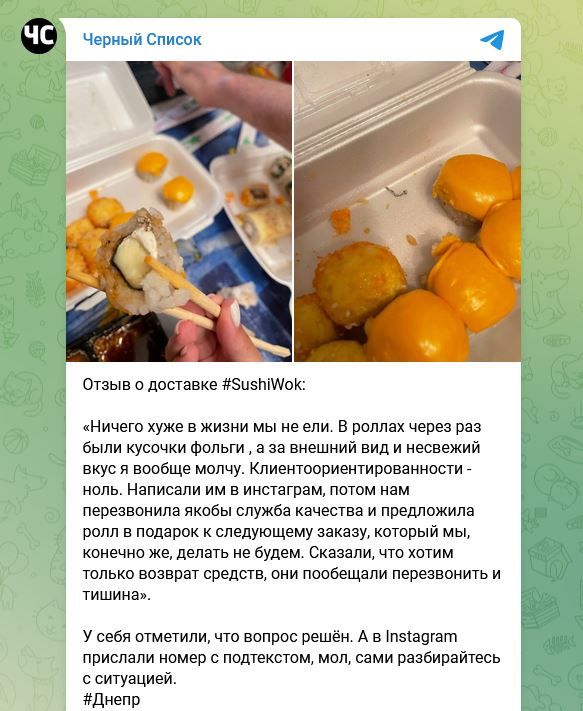 Днепряне жалуются на известную сеть доставки SushiWok.