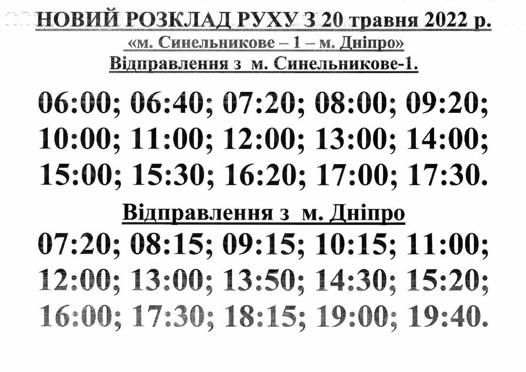 С 20 мая изменится график движения автобусов Днепр-Синельниково-1.