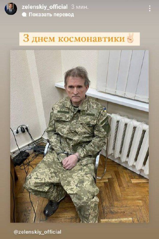 Владимир Зеленский в Instagram опубликовал стори с сообщением о задержании Медведчука и подписал: "С днем космонавтики".