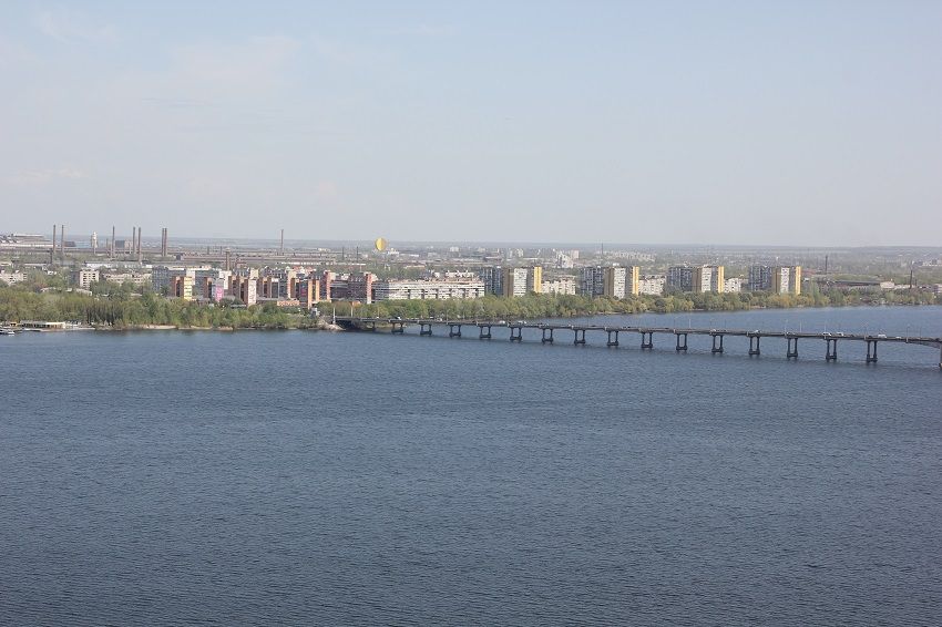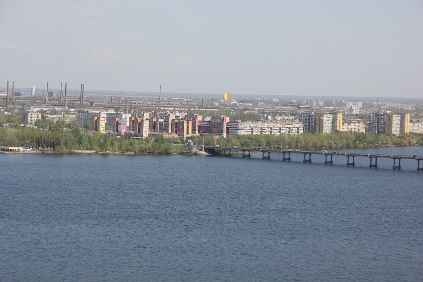 Открывается отличная перспектива на Днепр. Можно с высоты птичьего полета увидеть завод "Олейна".