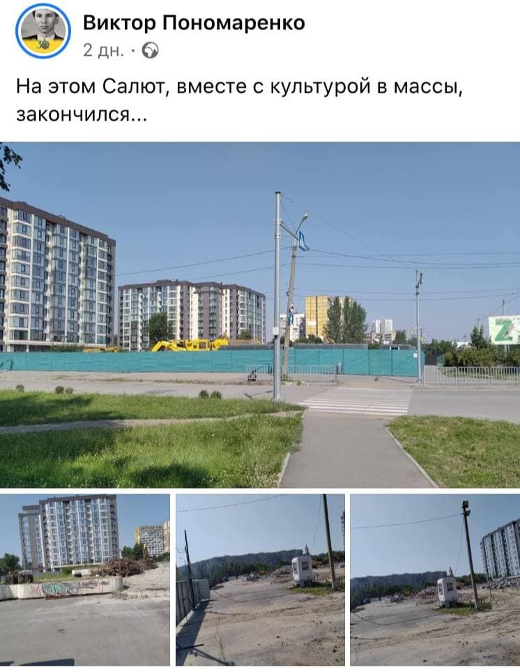 Фотографиями с места, где раньше располагался «Салют», поделился днепрянин Виктор Пономаренко в своем Facebook.