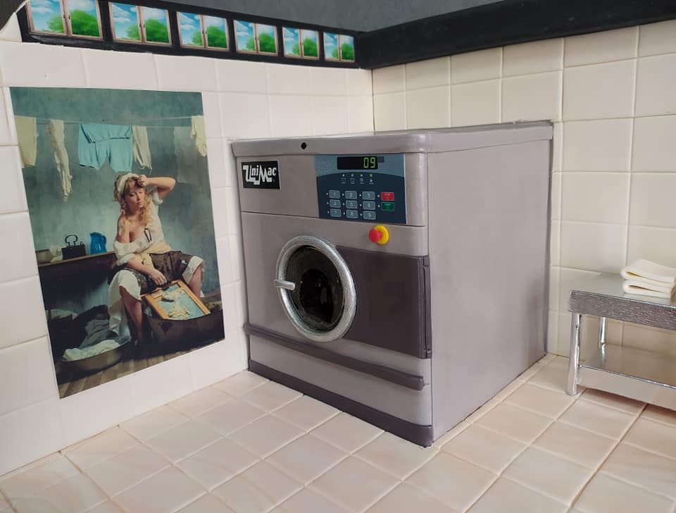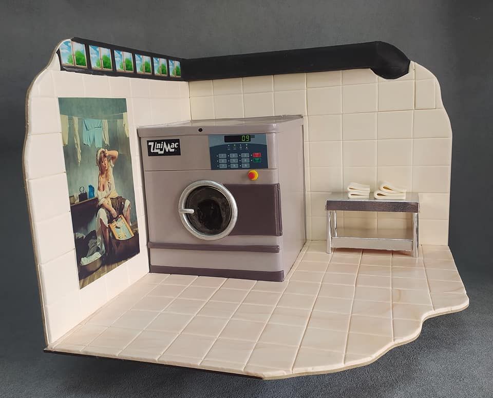 Десерт вышел очень красивым и главное правдоподобным. Сразу же и не поймешь, что это торт, а не миниатюра прачечной комнаты.