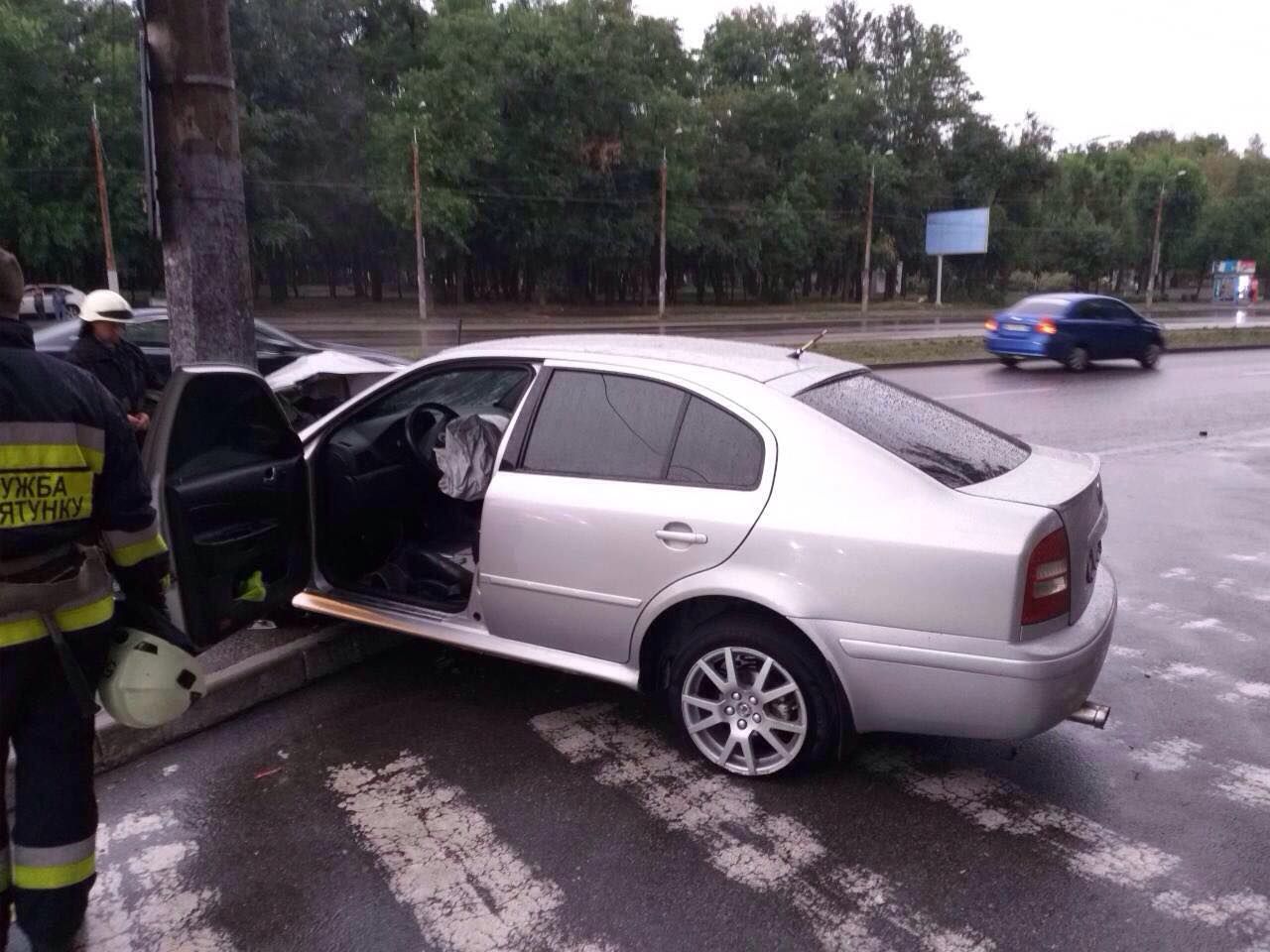 Вчера вечером, 26 июля,  на проспекте Богдана Хмельницкого (Героев Сталинграда) автомобиль «Skoda Octavia» влетел в столб. По предварительной информации, водитель не справился с управлением на мокром асфальте.