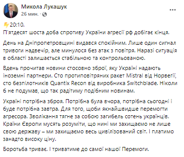 Ситуация на Днепропетровщине остается стабильной: Лукашук