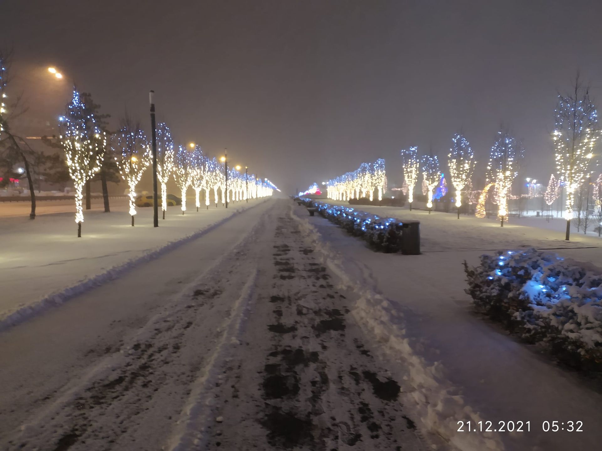 Днепрянин Ruslan Yainov в своем Facebook поделился фотографиями заснеженного сквера ночью.