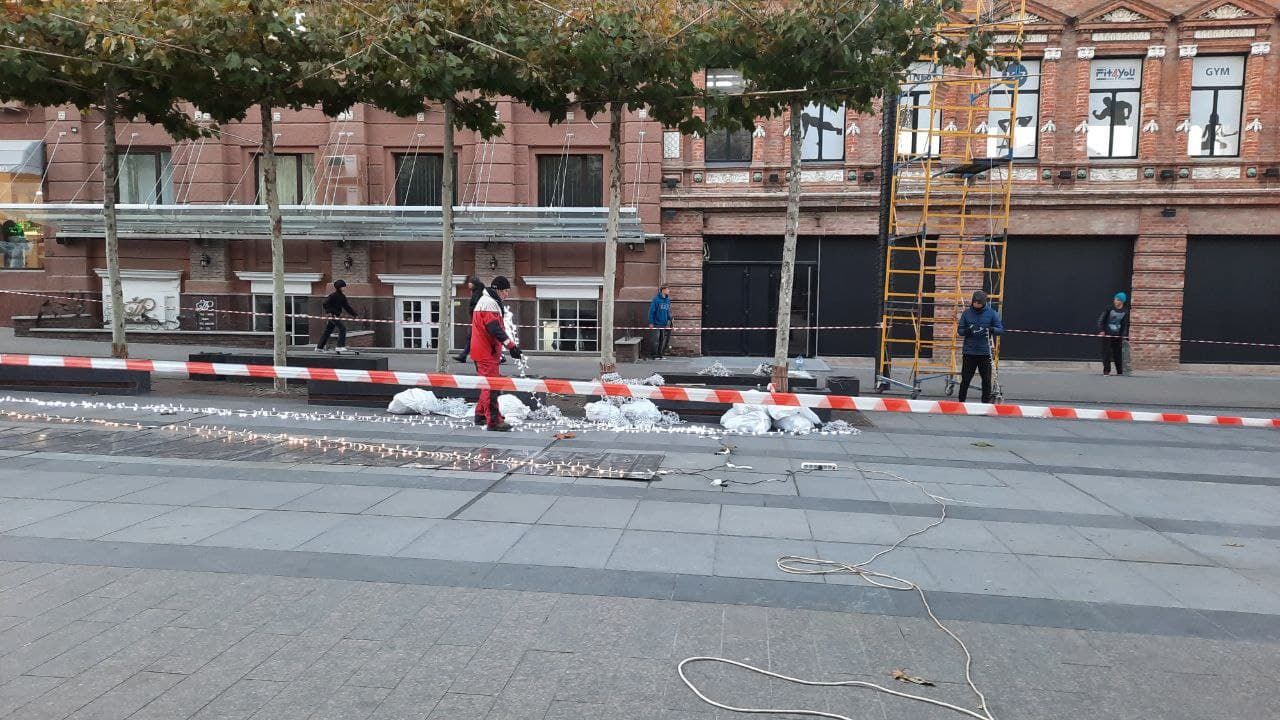 Пока не известно, когда огни полноценно загорятся, но скорей всего это произойдет в декабре. Пока из привычных светящихся праздничных гирлянд, только те, которые рабочие включили, чтобы проверить их состояние.