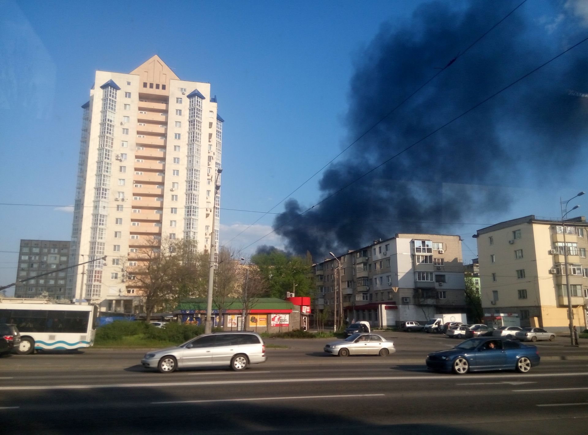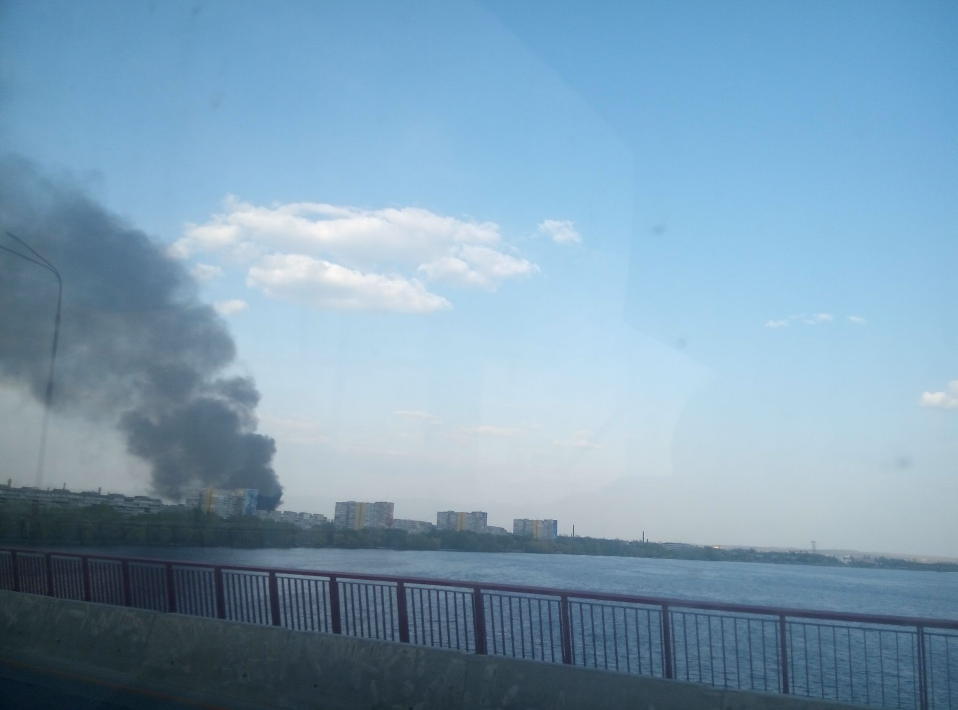 Столб дыма можно увидеть даже на правом берегу Днепра.