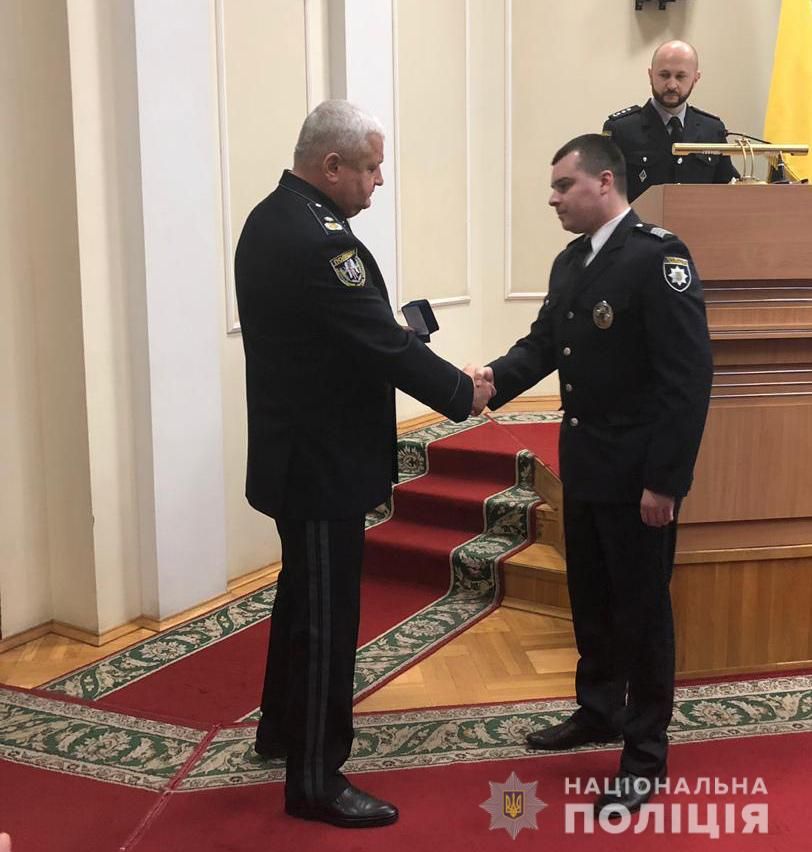 Так, за задержание опасного подозреваемого, Вячеслав Андруцкий и его напарники Игорь Фургало и Николай Чумак были награждены благодарностями и ценными подарками. Начальник Главного управления Национальной полиции области Виталий Глуховеря лично вручил им награды.