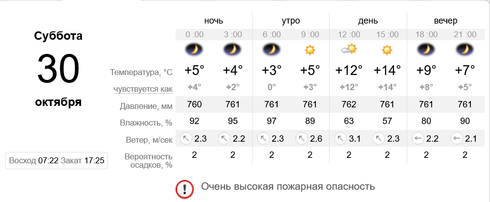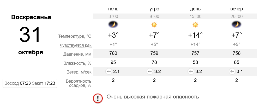 В этот день тоже будет держаться ясная погода без единого облачка на небе. Утром в воскресенье температура воздуха будет в районе 7 градусов тепла, а днем – 14 градусов. Вечером снова похолодает до 7 градусов. Сильного ветра, как и дождя, в воскресенье не прогнозируют.