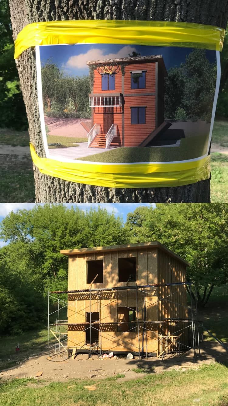 Як йде процес будівництва показали дніпровські урбаністи. У спільноті Urban Dnipro Community Руслан Ширинов опублікував фотографію перших результатів. На фото видно, що вже зробили фундамент і звели дерев'яні стіни. Ще треба облаштувати сходи, вікна і меблі всередині будиночку. Висотою будівля буде 6 метрів, а загальна площа становить 50 метрів квадратних.